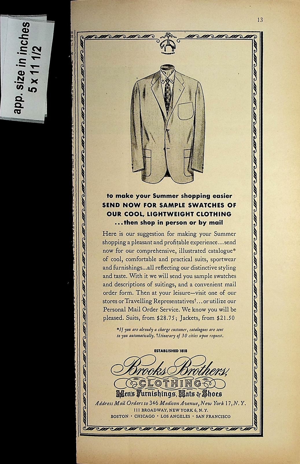 1958 Brooks Brothers Men's Clothing Furnishings Vintage Print ...